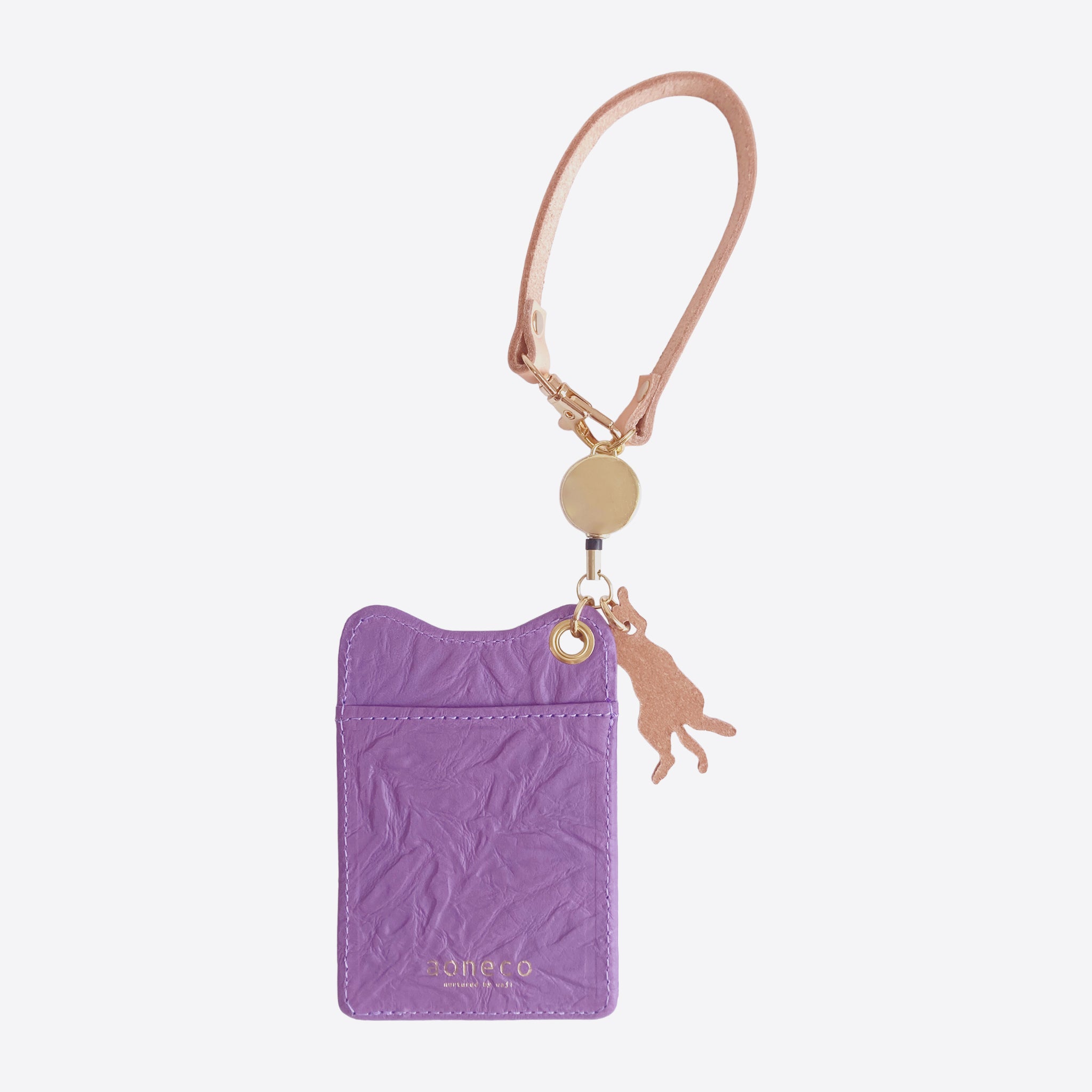 ”厳かにネコ”をテーマにしてデザインされた、大人かわいいネコグッズ。 さりげないネコ耳型に、ネコのくり抜きとチャームもついた、アオネコのパスケースです。