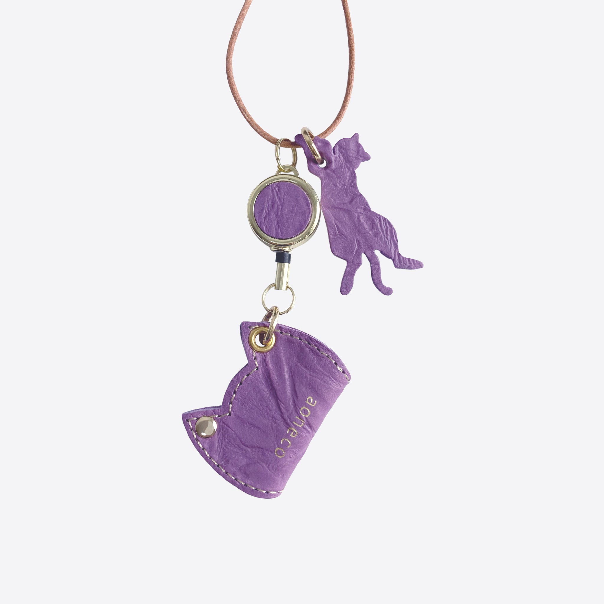ネコ型のペン刺しにペンを通して、革ひもは首にかけてお使いいただけます。作業中でもペンを紛失する心配なし。