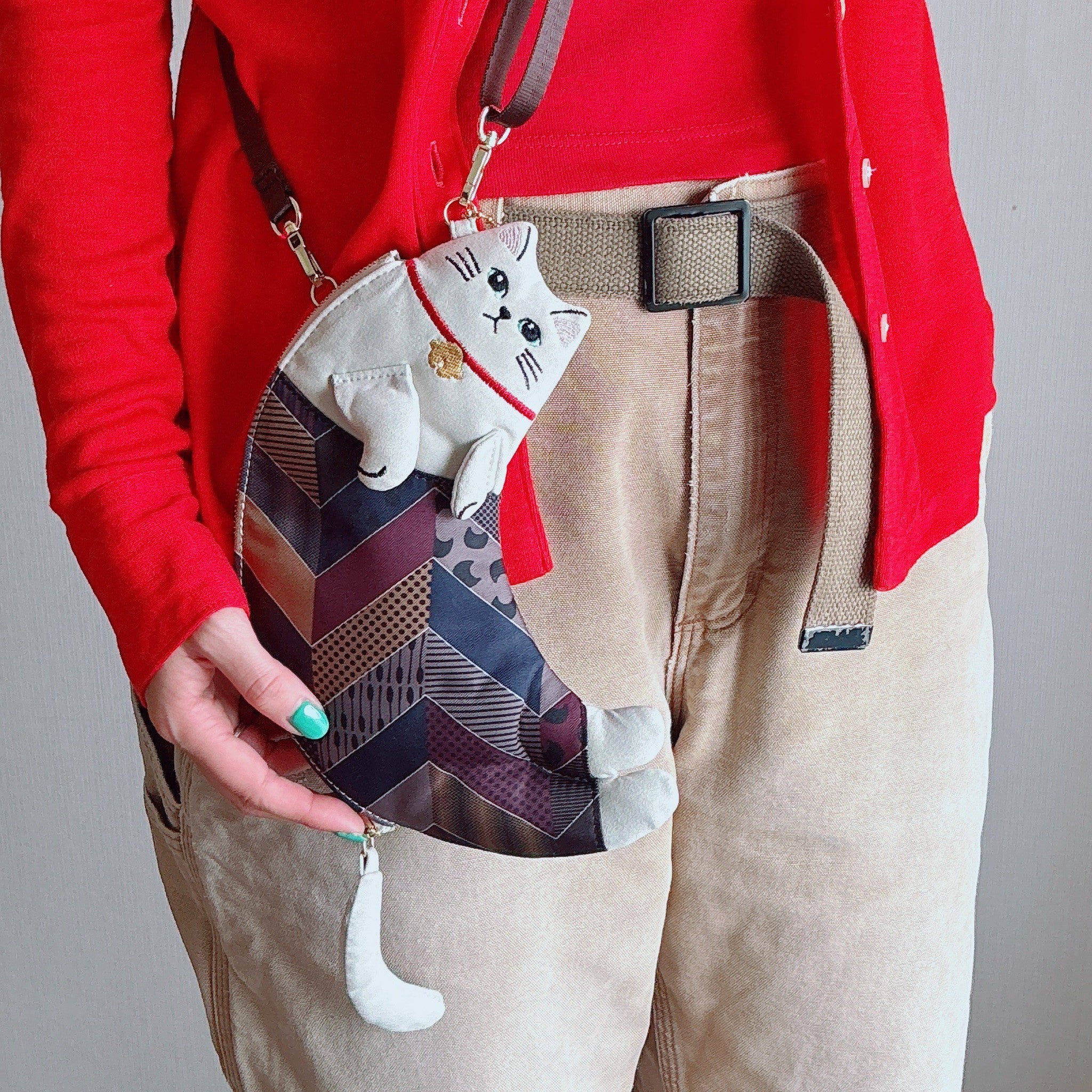 肩にかけた状態でも寝転んだ猫がポシェットを持つと見えるので萌えです♡