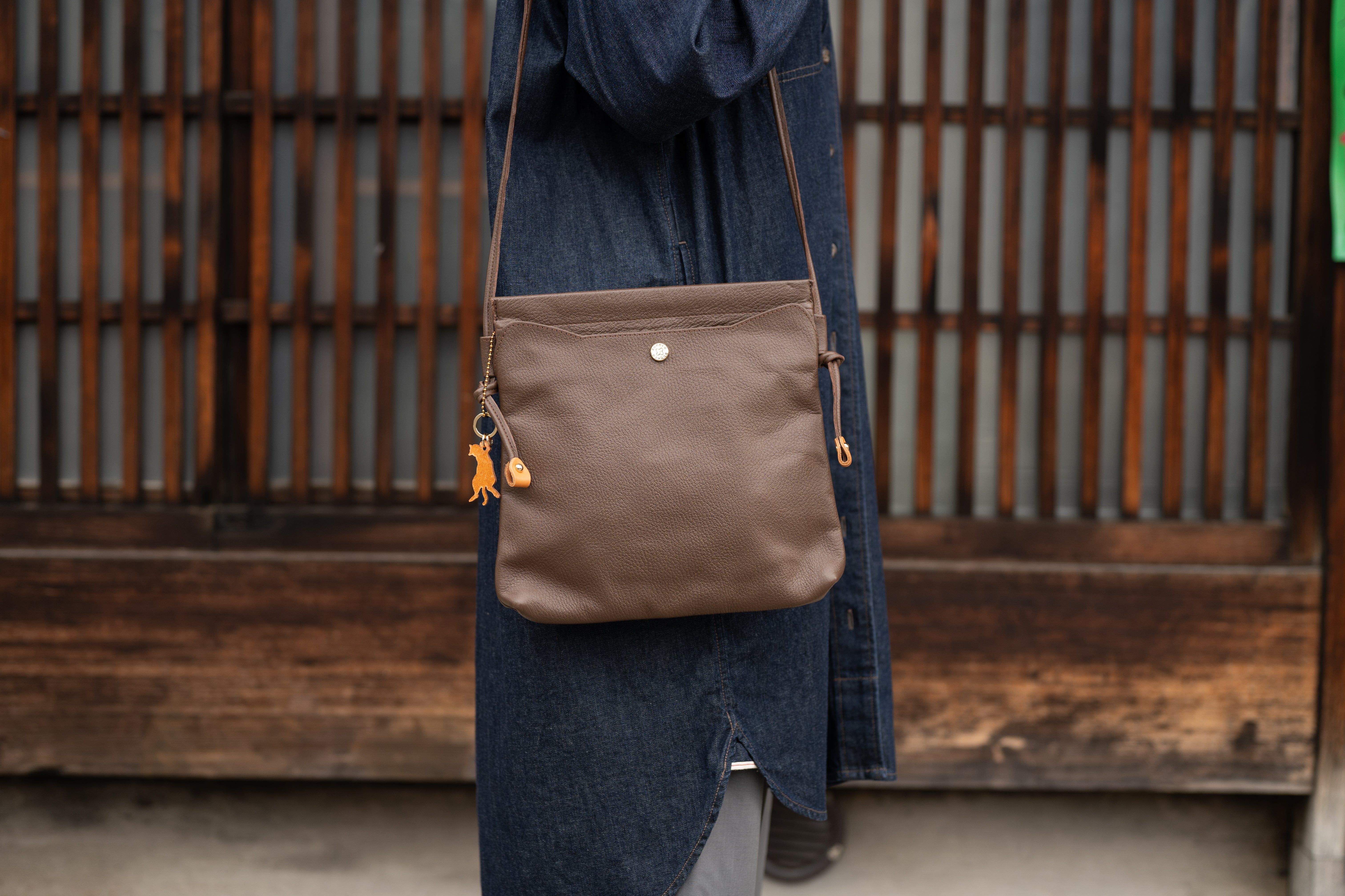 凹凸のあるシボ加工が特徴の革を使用したこの口バネショルダーバッグは、見た目の上品さだけでなく、実用性にも優れた仕上がりとなっています。細かな凹凸があることで、日常使いによる小さなキズやスレが目立ちにくく、長く美しい状態を保てるのが魅力です。