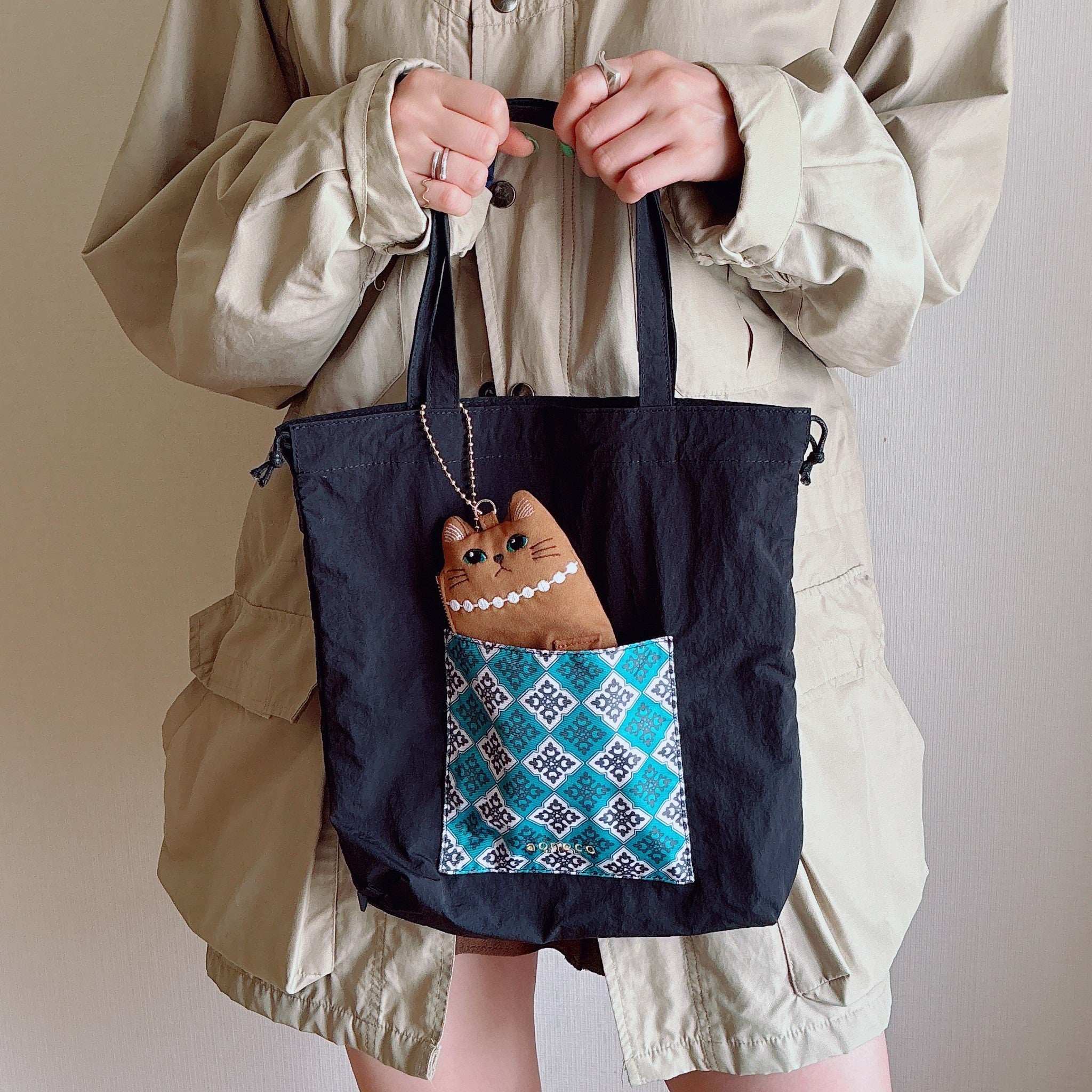 中にエコバッグは入っており、可愛らしい見た目でいざという時に役に立つお出かけには欠かせないアイテムです。