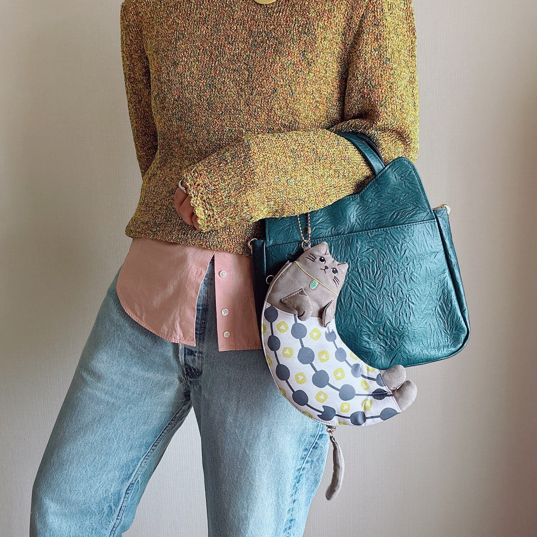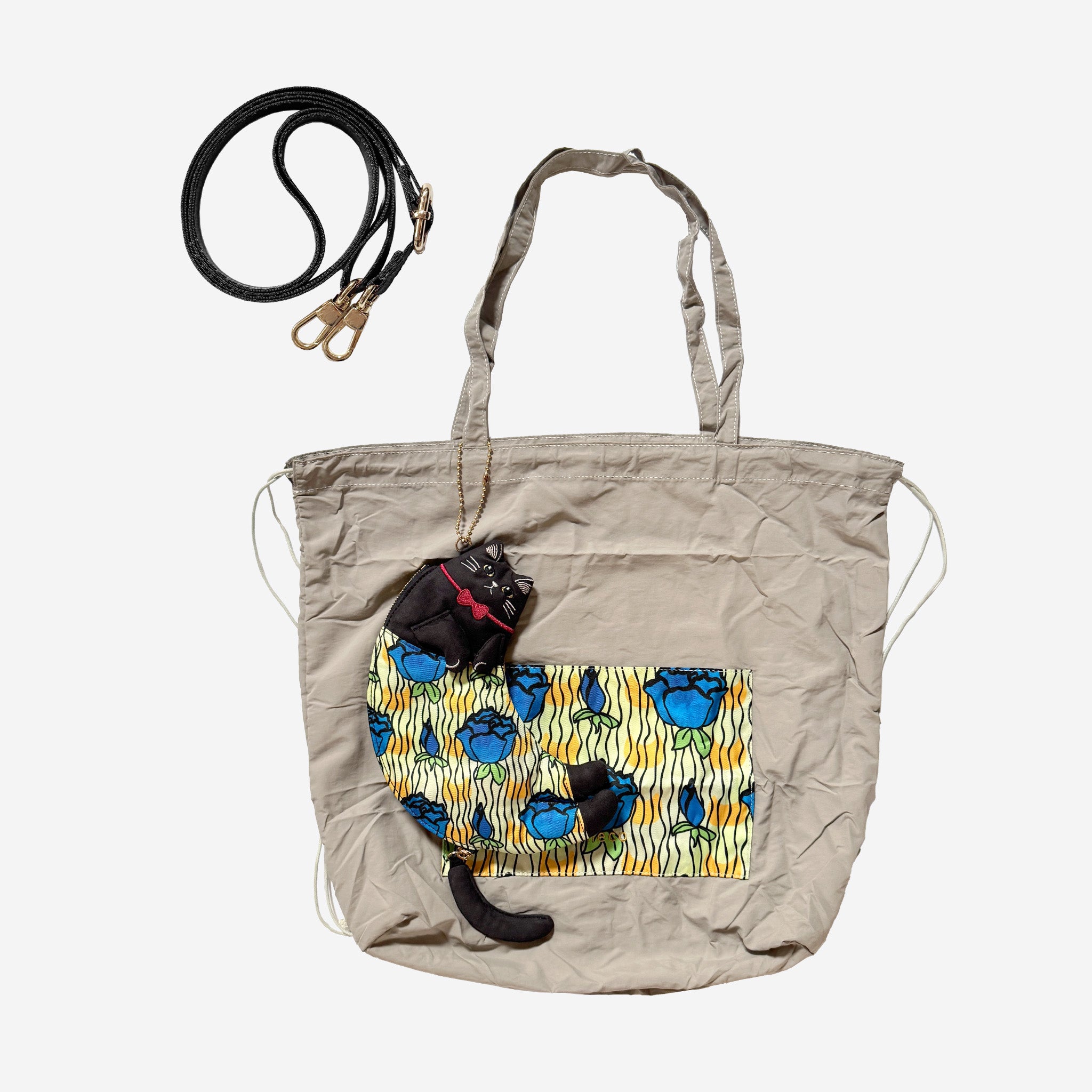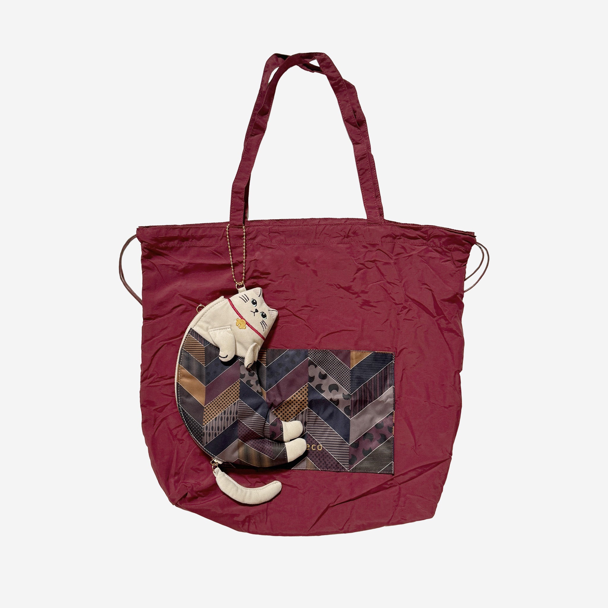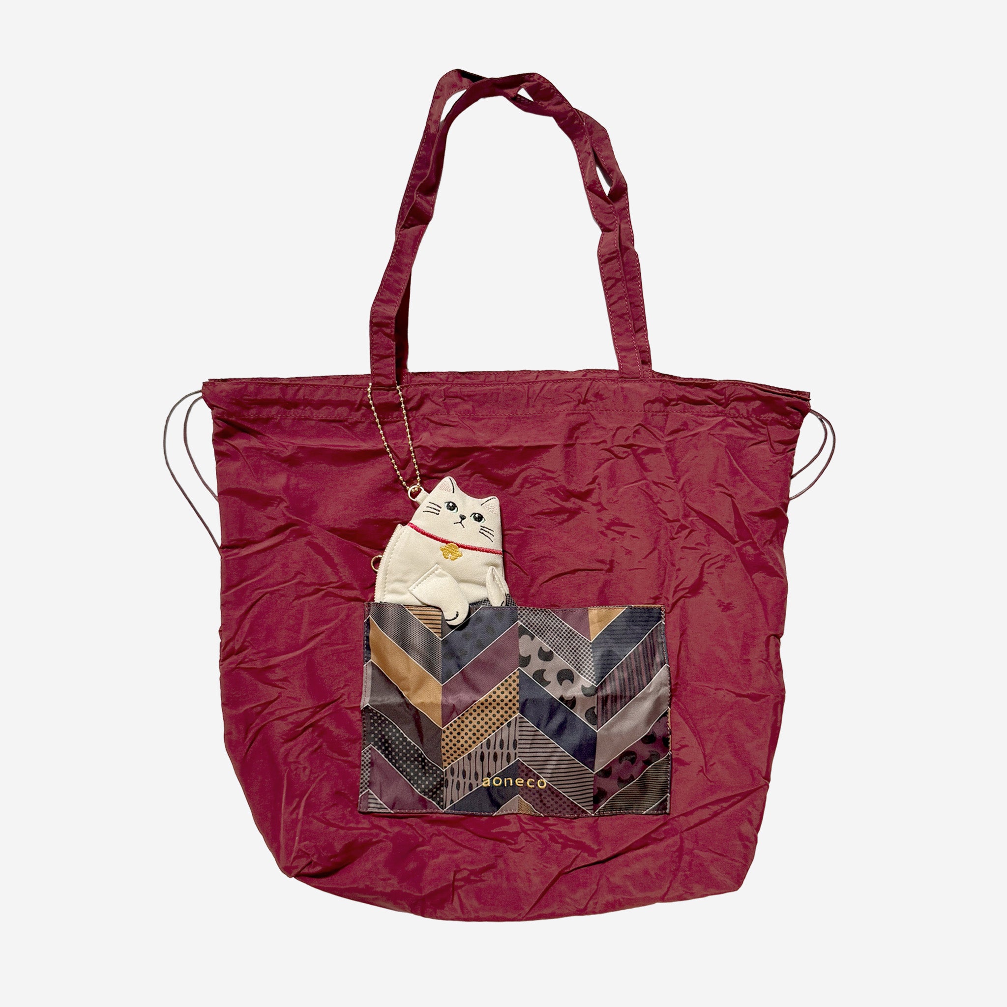 ネコのステテコ柄と、リュックトートの模様はおそろいでペアルック仕様。