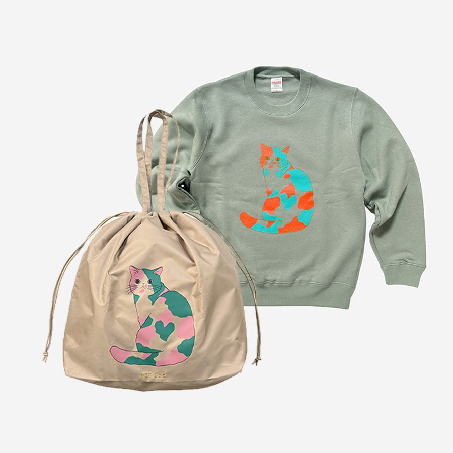 三毛猫セット プリントスウェット&巾着バッグセット