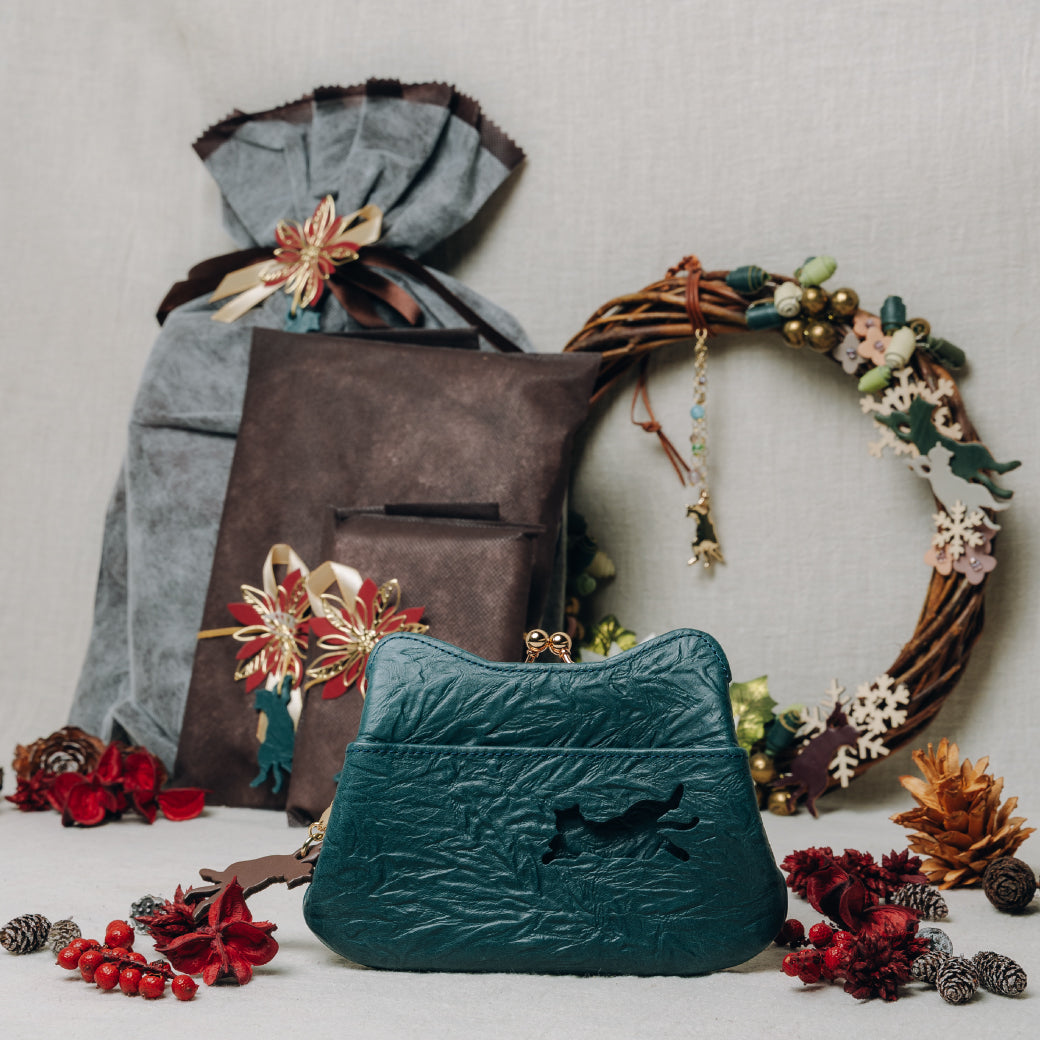 中身を確認しやすく取り出しやすい、大きな間口のがま口パーツを使用。