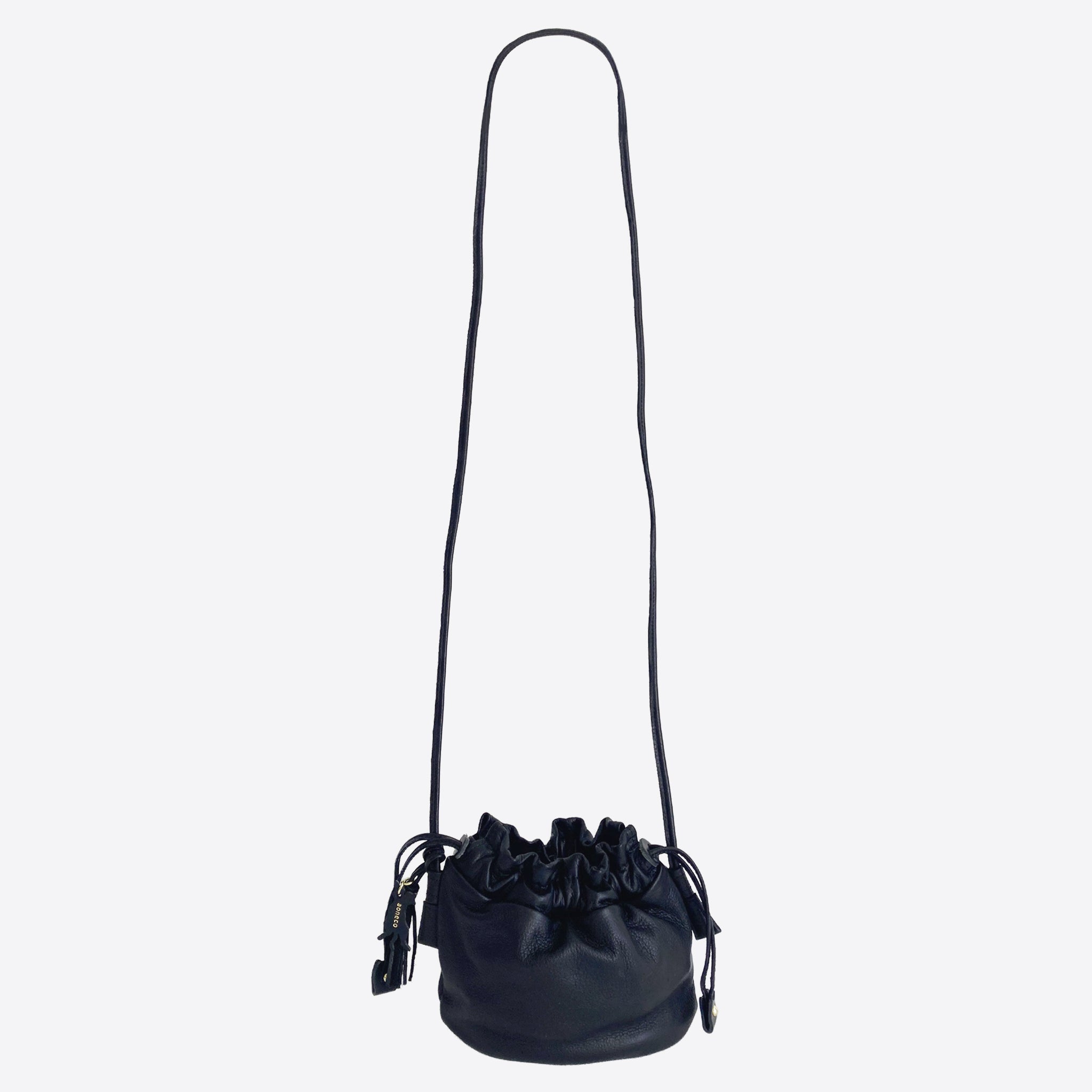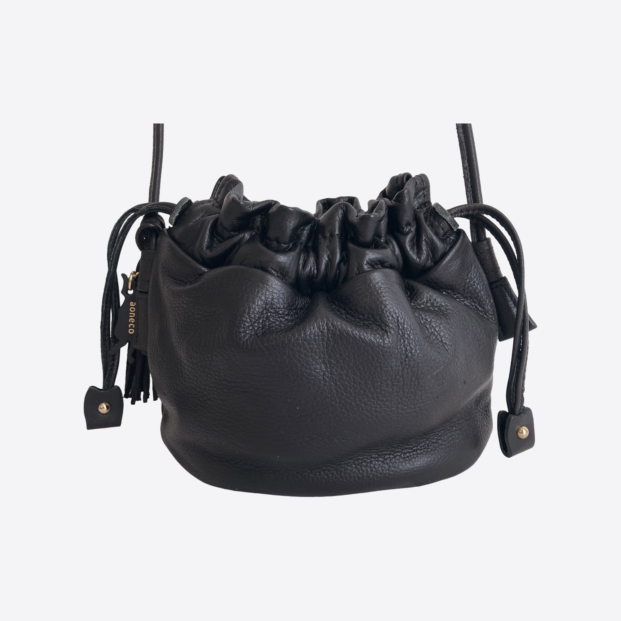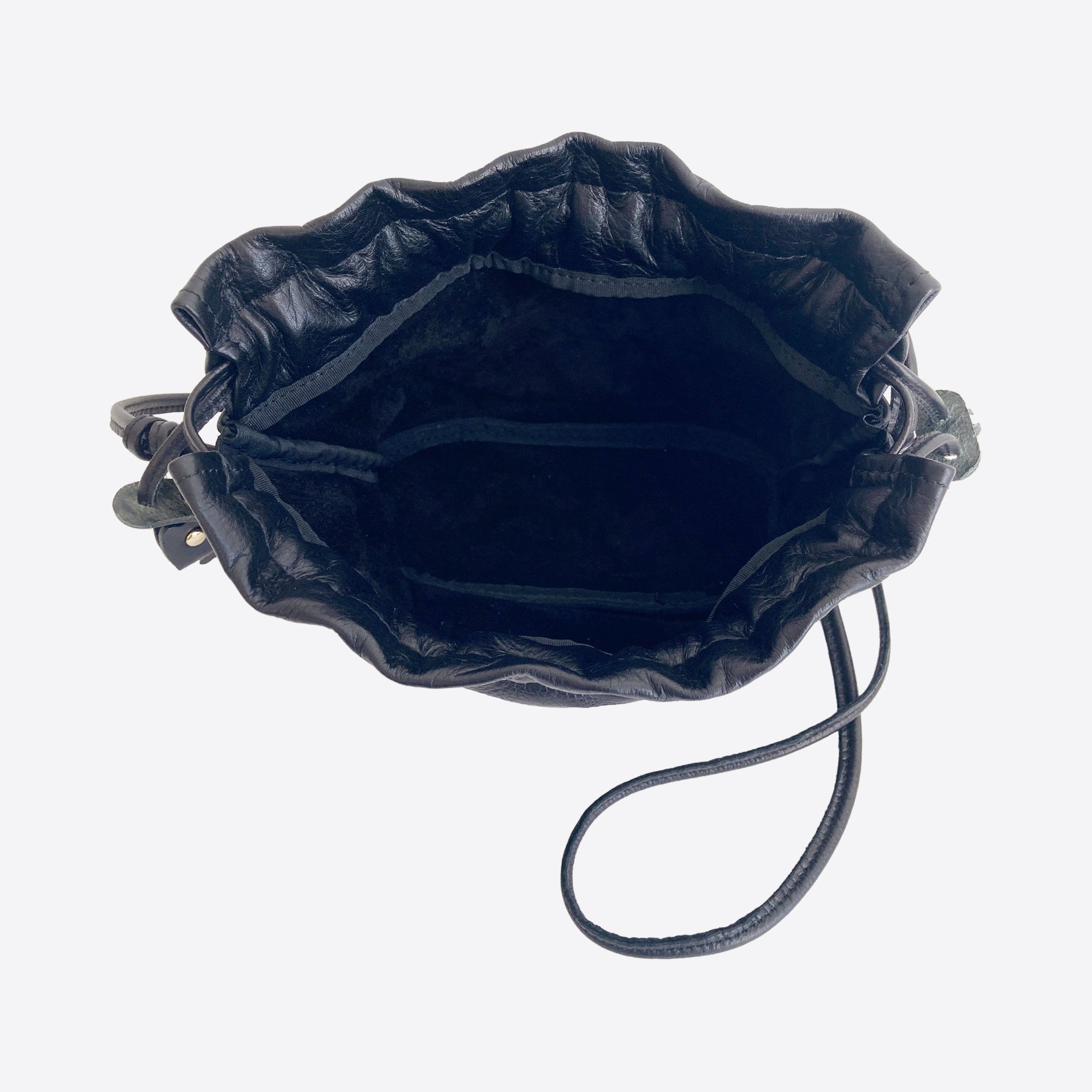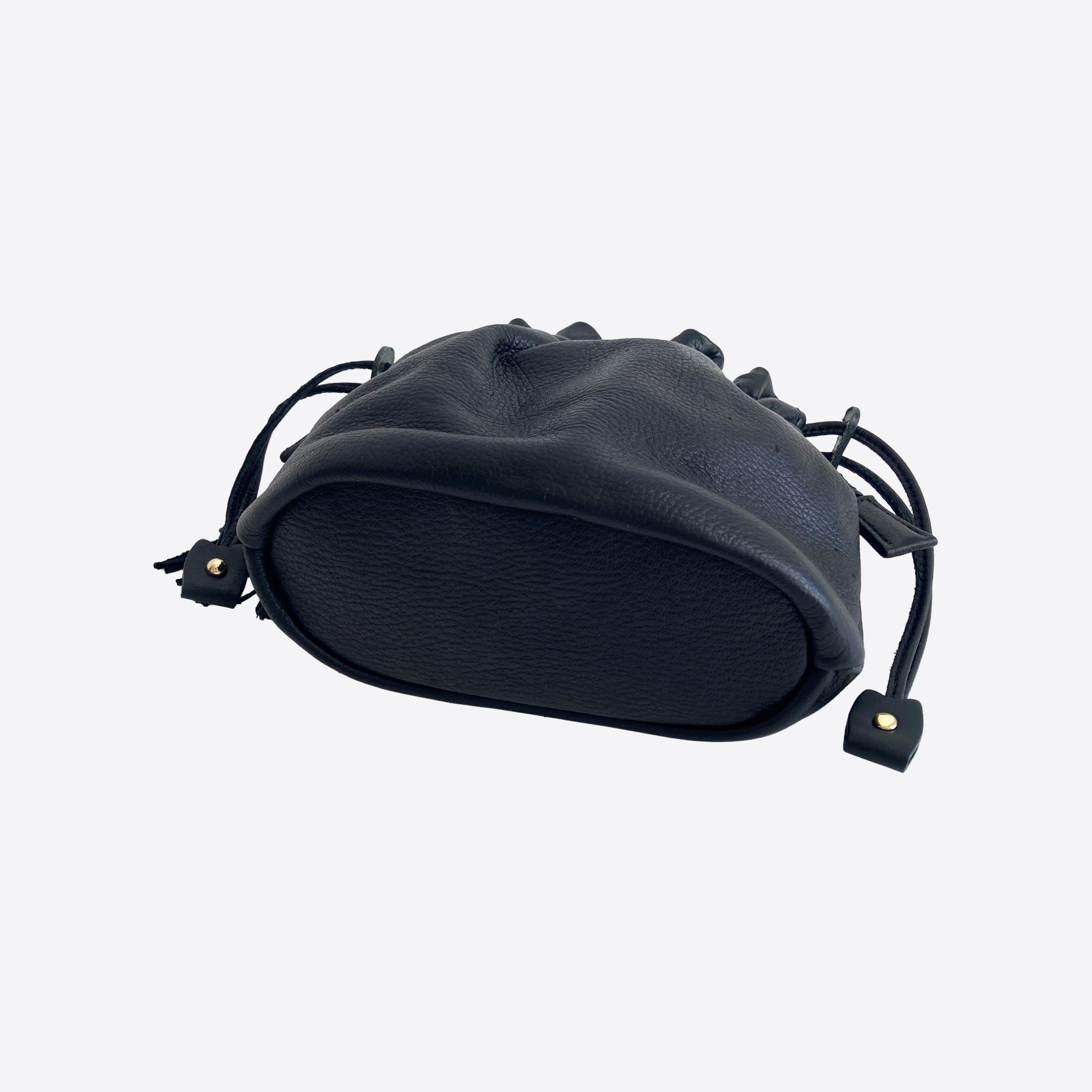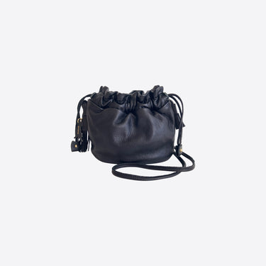 オールレザーの巾着ショルダーバッグ。