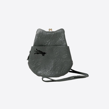 前ポケットにはネコ型のくり抜き、サイドにはヌメ革のネコキーホルダー。