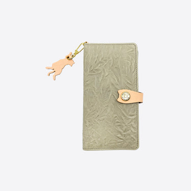 絞り加工レザーの手帳型マルチスマホケース。