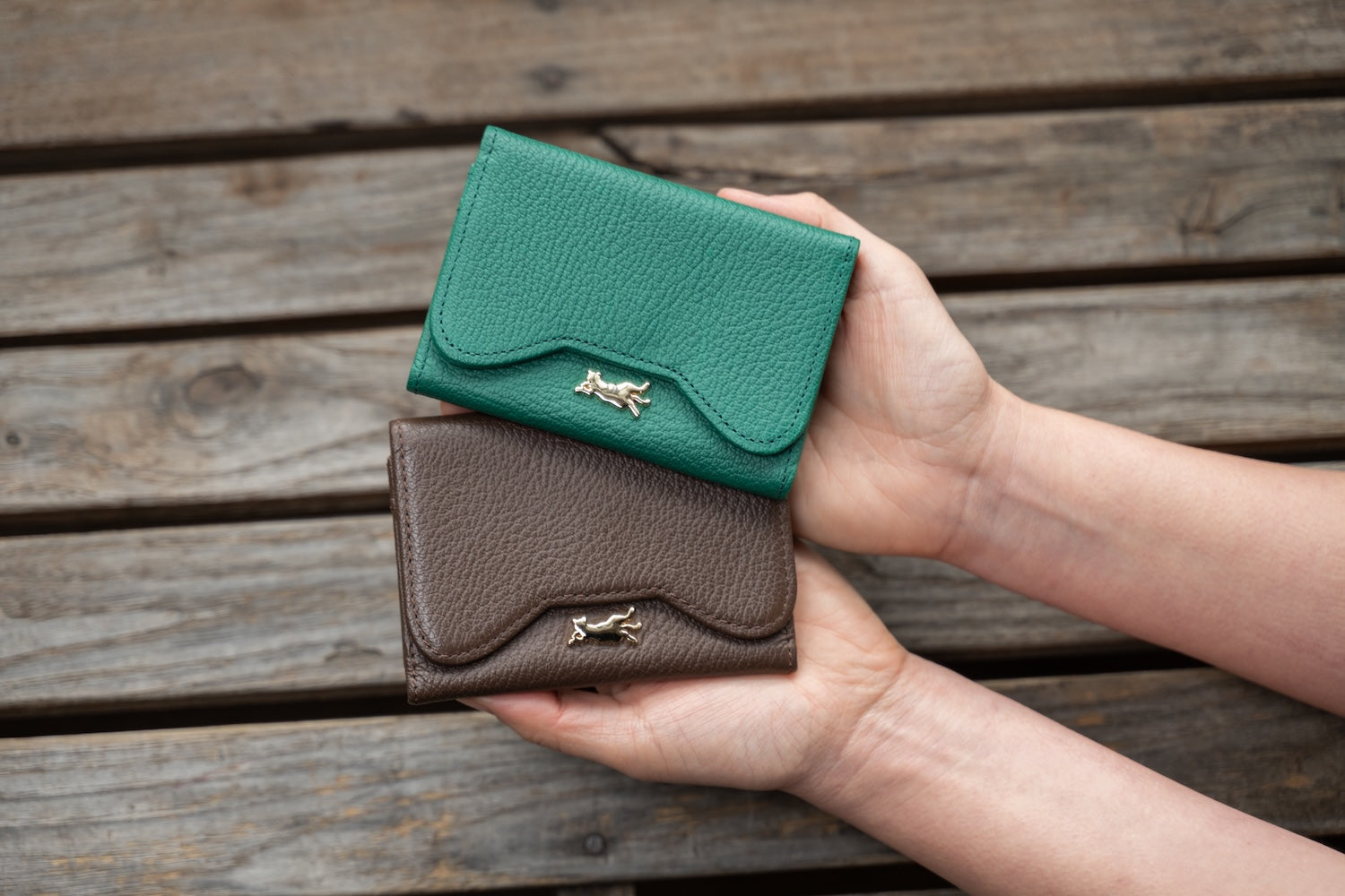 ヤギ特有の繊細なシボを型押しによって牛革に再現。表面の細かな凹凸が、日常使いによるスレや細かいキズが目立たず、気になりにくい。
