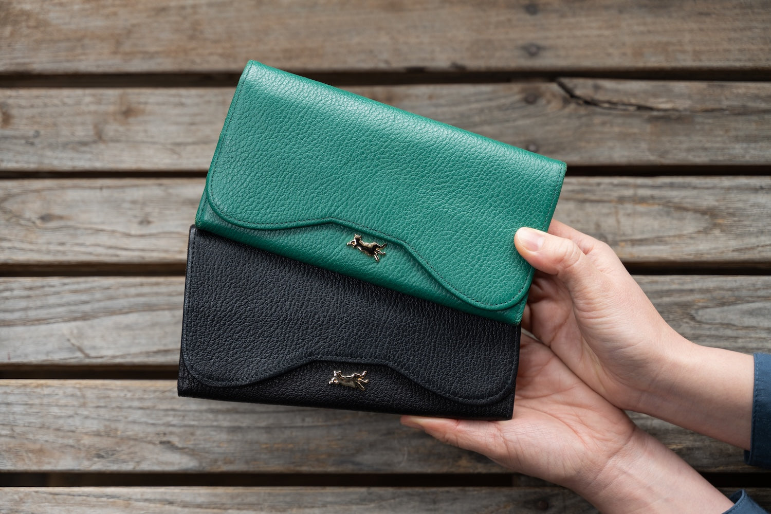 ヤギ特有の繊細なシボを型押しによって牛革に再現。表面の細かな凹凸が、日常使いによるスレや細かいキズが目立たず、気になりにくい。