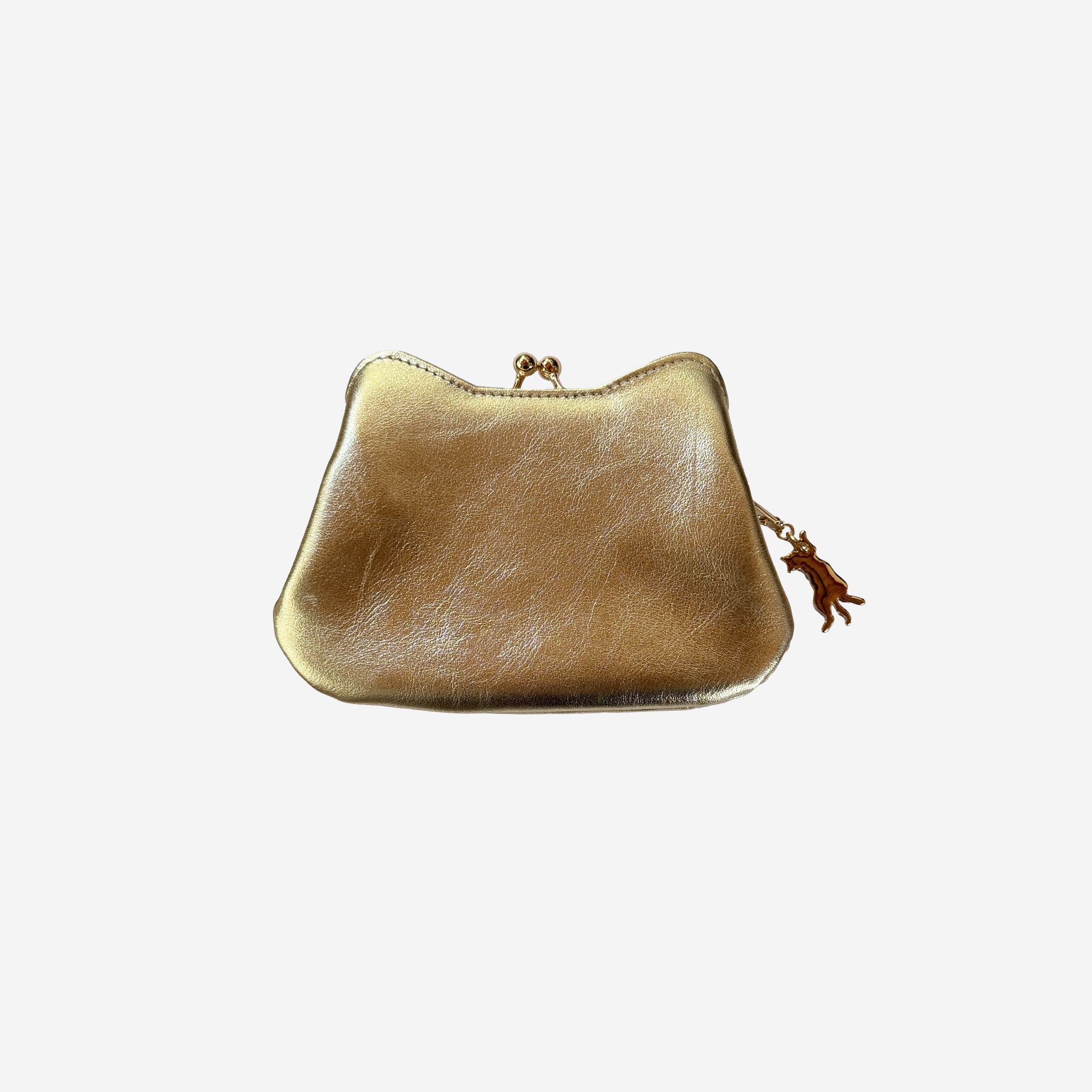 口金には、あお向けネコ姿のゴールドチャームが付いた、特別コラボアイテムです。
